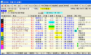 [画面5]09年の紅梅Sの出馬表。馬名の意味、由来は出馬表や成績画面、あるいは「馬名検索」機能などから「馬データ」画面を表示すると確認できる。
