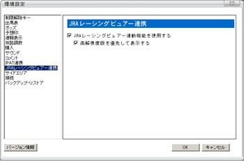 [画面1]JRA-VAN NEXTの「環境設定」-「JRAレーシングビュアー連携」画面。「連動機能を使用する」にチェックを入れると、JRA-VAN NEXTから直接、調教映像やレース映像などが再生できるようになる。