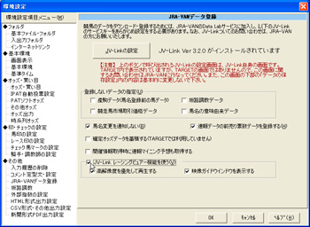[画面3]TARGET frontierJVの「オプション」→「環境設定」→「JRA-VANデータ登録」画面。「JV Link レーシングビュアー機能を使う」にチェックを入れれば連携が可能だ。