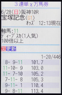 また、特に「超大穴」狙いの穴党の方にオススメなのが、3連複・3連単で提供される「X万馬券検索」機能である(画面4)。軸馬、そして「○倍以上」とオッズを指定すると、その軸馬絡みで指定したオッズ以上になる組み合わせのみを抽出して表示できるのだ。特定の馬絡みのオッズをすべて表示したい場合は「流し」や「フォーメーション」を、特に高配当に絞って検索したい場合は「X万馬券検索」と使い分けたい。