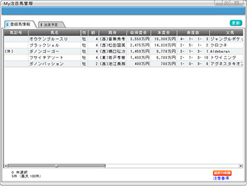 [画面3]「My注目馬管理」画面の例。馬名をクリックするだけで、簡単に各馬の「競走馬プロフィール」が表示できる。また「出走予定」タブで、その週の出走情報もチェック可能だ。