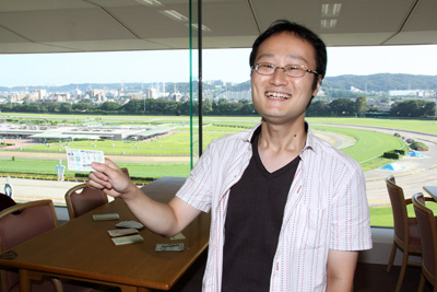 渡辺: はい、フォーメーションとかで購入金額を(オッズに応じて)自動配分してくれるので。競馬場ではケータイを左手に持って、これを見ながらマークカードに100円、200円、300円、100円……、と塗っています。