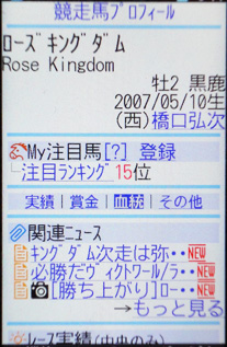 [画面1]「競走馬プロフィール」画面。ここで[血統]をクリックすると、その馬のさまざまな血統に関する情報を表示できる。