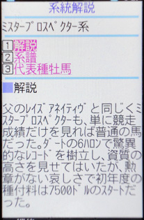 [画面4]こちらは系統解説。解説はかなり詳細な上、その系統の代表的な種牡馬も列挙されるので、画面3の情報と合わせれば、まったく知らない種牡馬でもある程度は傾向を把握できそうだ。