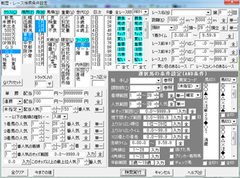 過去10年の傾向を分析する際は、この画面から出走全馬のデータを読み込む作業を行う。画面2で[検索条件]ボタンをクリックし、「戦歴・レース検索条件設定」画面(画面3)の右側「着順範囲」で[全]をクリック後に[検索実行]。続く検索期間の設定は変更せずに検索すると、10年分の出走全馬が一覧表示される(画面4)。ここで[項目集計]から集計したい内容を選択すれば、騎手や人気、前走レース別などといった細かなデータが閲覧できる。