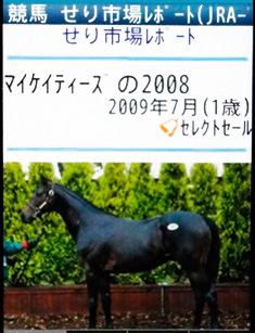 [画面5]画面4から高額取引馬の一覧に進み、さらに「マイケイティーズの2008」を表示した例。写真や血統などの情報に加え、画面を下にスクロールすれば血統解説も表示される。