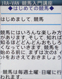 [画面4]画面1で[入門講座]を選択して表示される「競馬入門講座」のコンテンツ。競馬の仕組みについて、さまざまな解説がなされている。