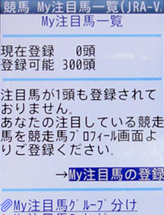[画面2]新規に登録する際は「My注目馬の登録]を選択する。