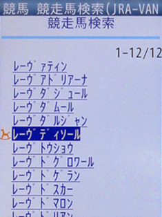 [画面4]画面3で入力したデータに基づく競走馬検索結果。表示された中から「My注目馬」に登録したい馬を選択する。