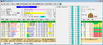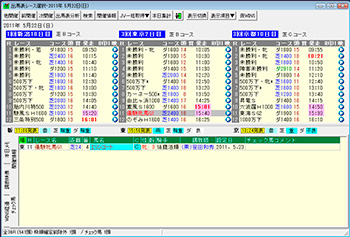 こうして登録したチェック馬は、レースに出走する際にすぐにわかるようになっている。画面4は、先の手順で登録したエリンコートが出走しているオークス当日の「出馬表レース選択」画面を表示した例。まず、オークス(優駿牝馬)が赤字で表示されており、これでチェック馬が出走していることがわかる(レース名の赤字はG1や牝馬限定ではなく、チェック馬の出走を意味する)。さらに、左下のタブで[チェック馬]を選択すれば、その日に出走しているチェック馬を一覧表示できる。予想する際にチェック馬を見落とす心配はまずないと言っていいだろう。