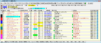 また、レースの出馬表を開くと、チェックした馬は反転表示されている(画面5)。これは成績画面でも同様だ。ほかに、画面3にあった編集ボタンからコメントを入力しておけば、メニューバーの[メインメニュー]→[コメント内を検索して一覧]から、コメントの内容から文字列を検索、表示できる。コメントの入力内容にルールを決めておけば、計35個用意されているチェック印を、より細かく分類して管理することが可能になる。