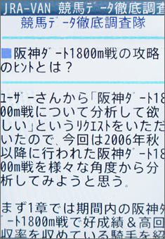 [画面3]9月19日に掲載された、「阪神ダート1800m戦の攻略のヒントとは?」の冒頭部分。その後掲載された9月23日分では、「休み明けの前走G1勝利馬」をテーマとして分析されている。