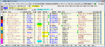 画面1は、マイルCSの出馬表を表示した例。メニューバーの[ファイル]-[調教映像リストを取得・更新する]を選択して更新作業を行うと、出馬表の一番右側に映像再生ボタンが表示され、ボタンをクリックすれば調教映像を再生できる(映像が提供されている場合)。