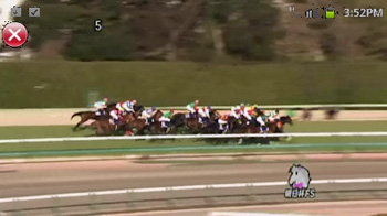 【画面1】Androidアプリでレース動画を再生した例(画面は合成です)。Androidアプリには月額315円の通常のコースと、525円の動画コースが用意されており、レース動画や調教動画は動画コースに登録すると視聴が可能になる。