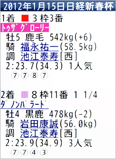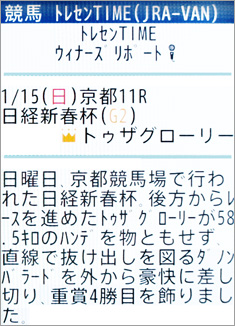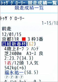 [画面2]活躍馬であれば、さまざまなニュースが掲載される。画面はトゥザグローリー・日経新春杯の「ウィナーズリポート」。