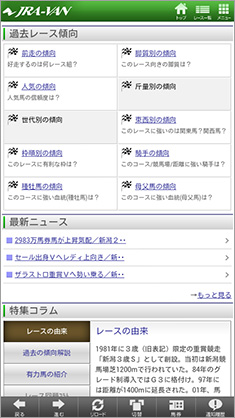 インタビューにもあったように、岡部さんは以前から、JRA-VANのケータイサービスを利用されていたそうだが、最近になってスマートフォンのAndroidアプリ(JRA-VAN競馬情報 for Android)を導入し、予想や競馬中継の準備に大いに活用されているとのこと。今回は、そのAndroidアプリを紹介しよう。