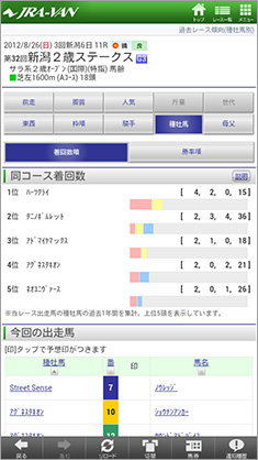 こういったデータは事前のレース検討、あるいは前日の検討番組などで見聞きしていても、いざ競馬場に行くと忘れていたり、パドックを見て気になった馬について「どうなんだろう」と改めて考えることも多いもの。また、当日になって前売り段階とは人気順が入れ替わっていることもある。そんなとき、JRA-VANのAndroid対応アプリがスマートフォンに入っていれば、その場でもう一度データを調べることできるのだ。