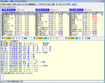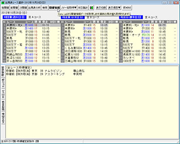 画面4は、画面3でオッズと成績を取得した後、[本日集計]ボタンから「出馬表・本日集計」画面を開いて[騎手・調教師]タブを選択して例である。画面上部のボタンで競馬場を限定したり、全場で表示することができ、この画面は東京競馬場に限定したもの。騎手名や調教師名をダブルクリックすれば、その騎手や調教師が赤で反転表示できるので、「本日○勝目」といった情報も素早く把握することが可能だ。