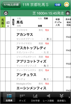 枠順確定前からiPhoneアプリで出走馬を確認