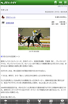【画面6】ウオッカの「名馬メモリアル」を表示した例。