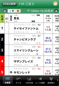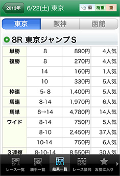 当日に知りたい情報といえば、まず馬場状態や出走取消、騎手変更などの開催情報。そしてオッズや成績速報なども挙げられるが、JRA-VANのiPhoneアプリではもちろん、こういった情報はリアルタイムで提供されている。